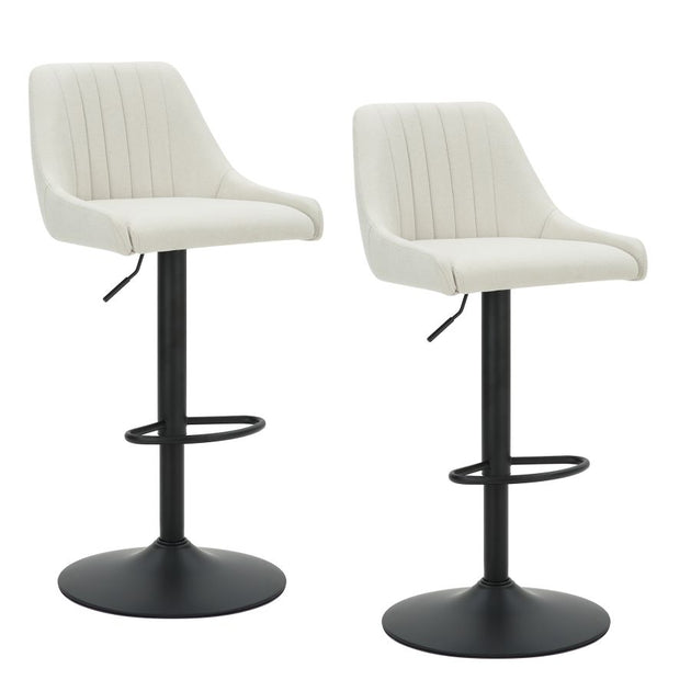 Kron Adjustable Height Air-Lift Swivel Stool, Set of 2, in Beige Fabric