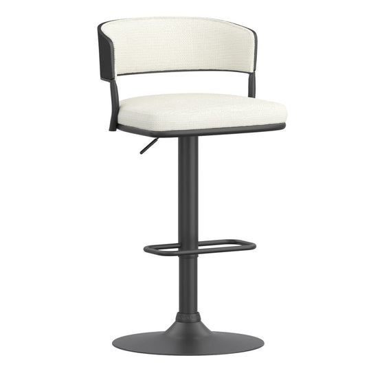 Kazan Adjustable Air-Lift Stool, Set of 2 in Ivory Performance Fabric & Black Metal