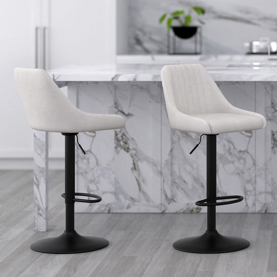 Kron Adjustable Height Air-Lift Swivel Stool, Set of 2, in Beige Fabric