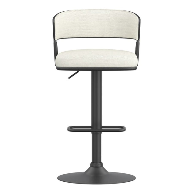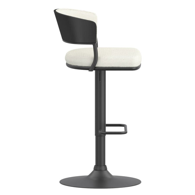Kazan Adjustable Air-Lift Stool, Set of 2 in Ivory Performance Fabric & Black Metal