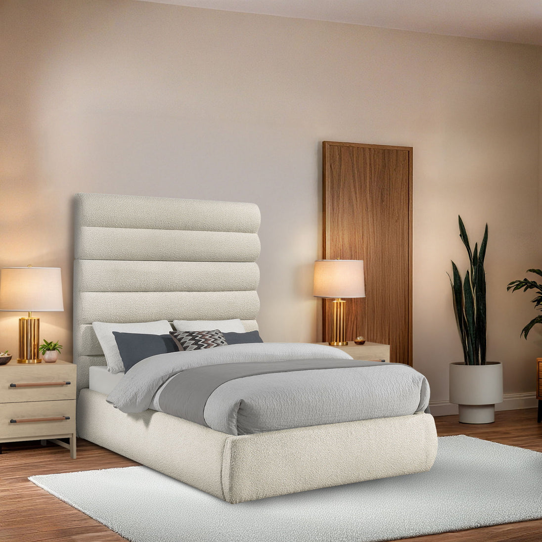 Adam - Boucle Fabric Bed With 70.5" Headboard