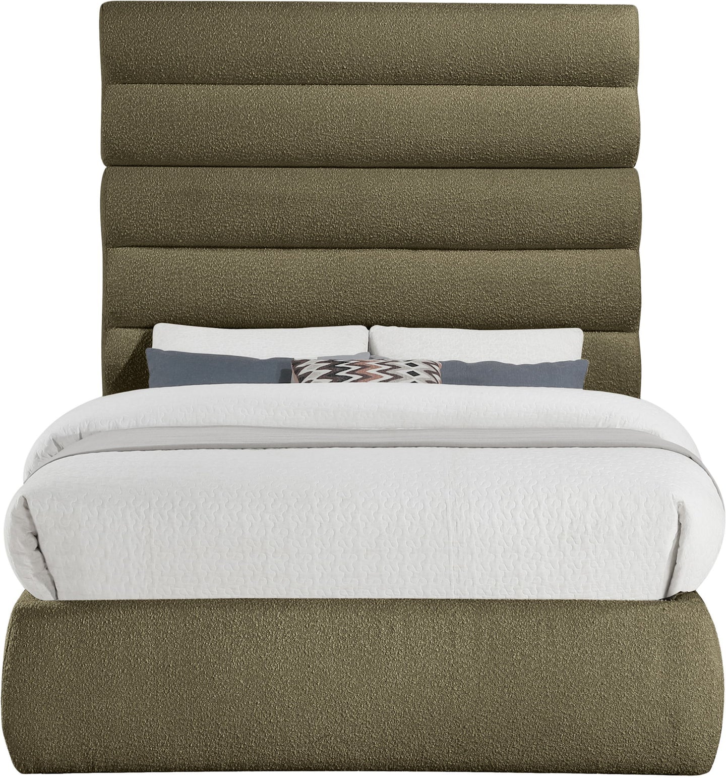 Adam - Boucle Fabric Full Bed With 70.5" Headboard - Olive