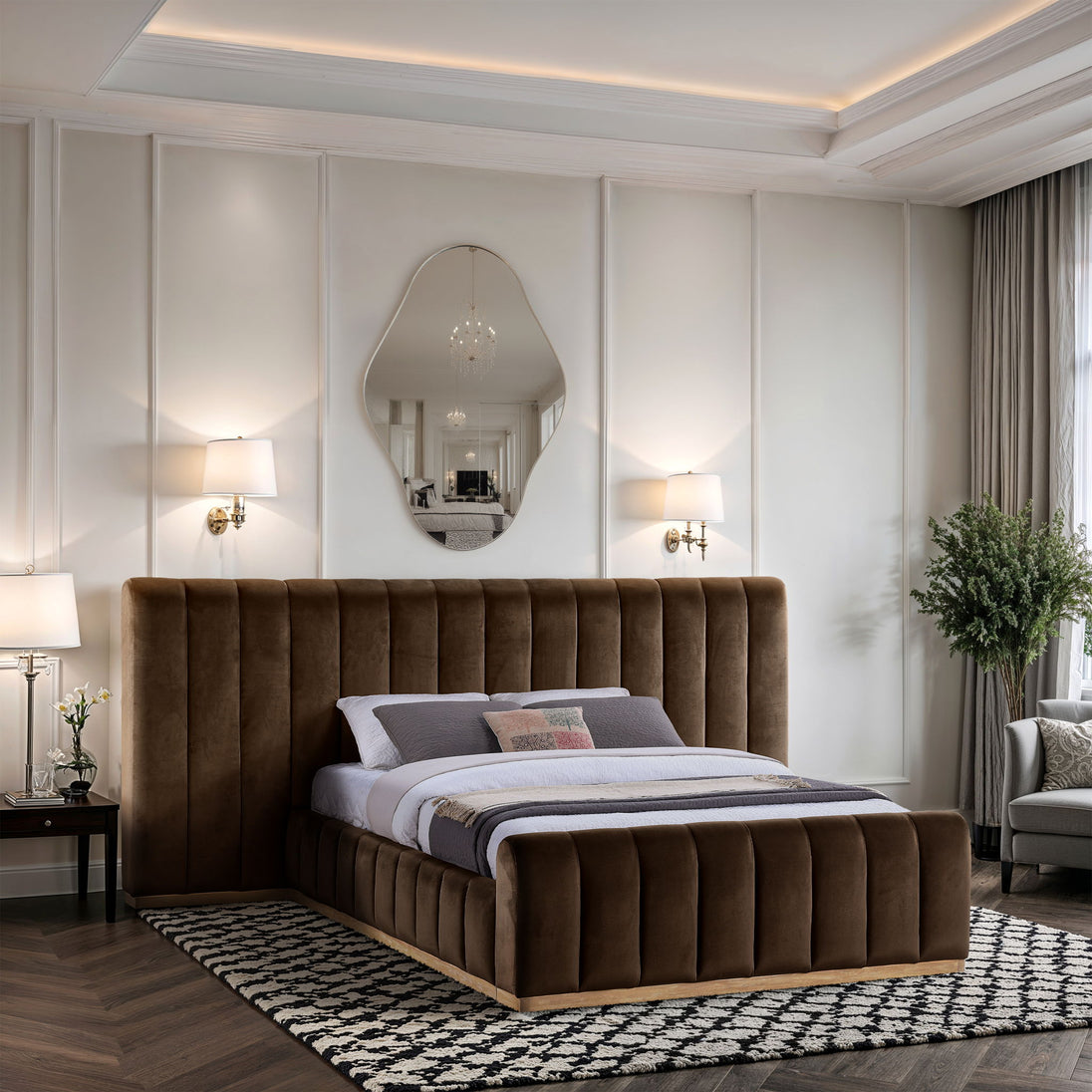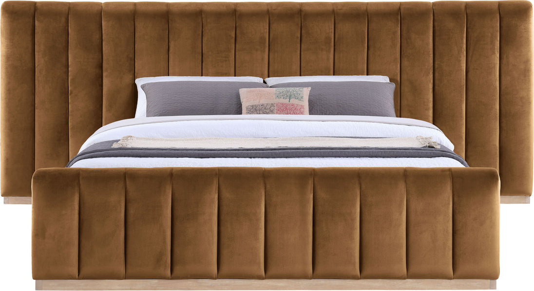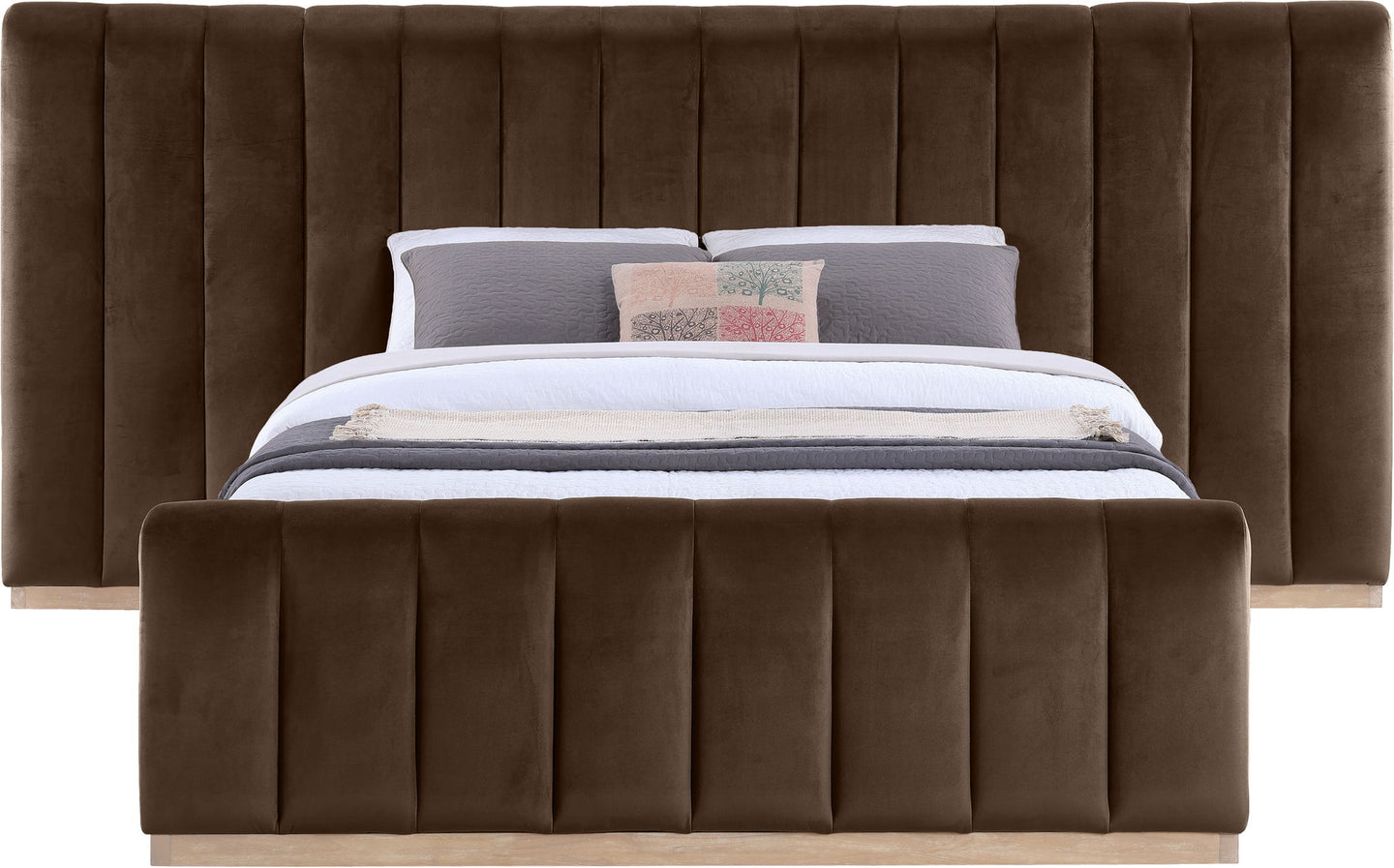 Amara - Velvet Upholstered Queen Bed - Saddle