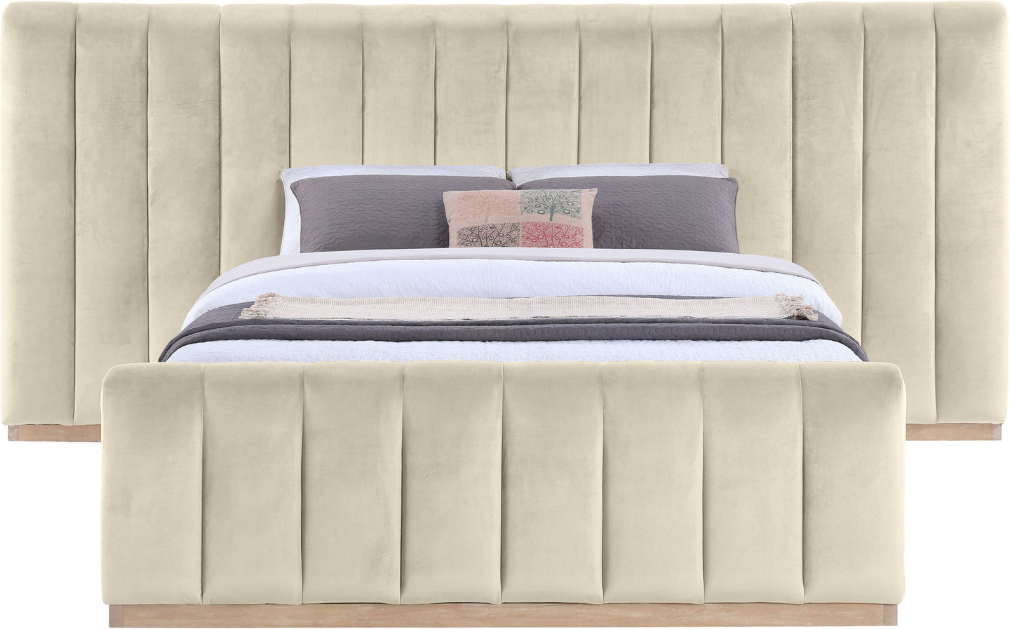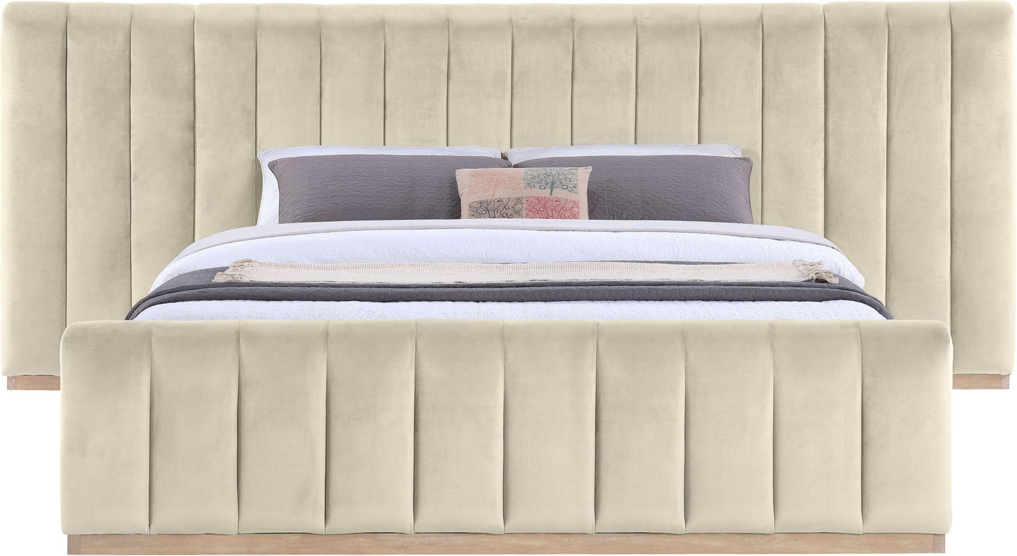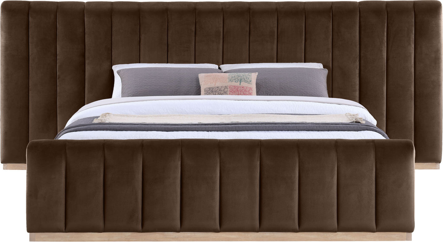 Amara - Velvet Upholstered Queen Bed - Saddle