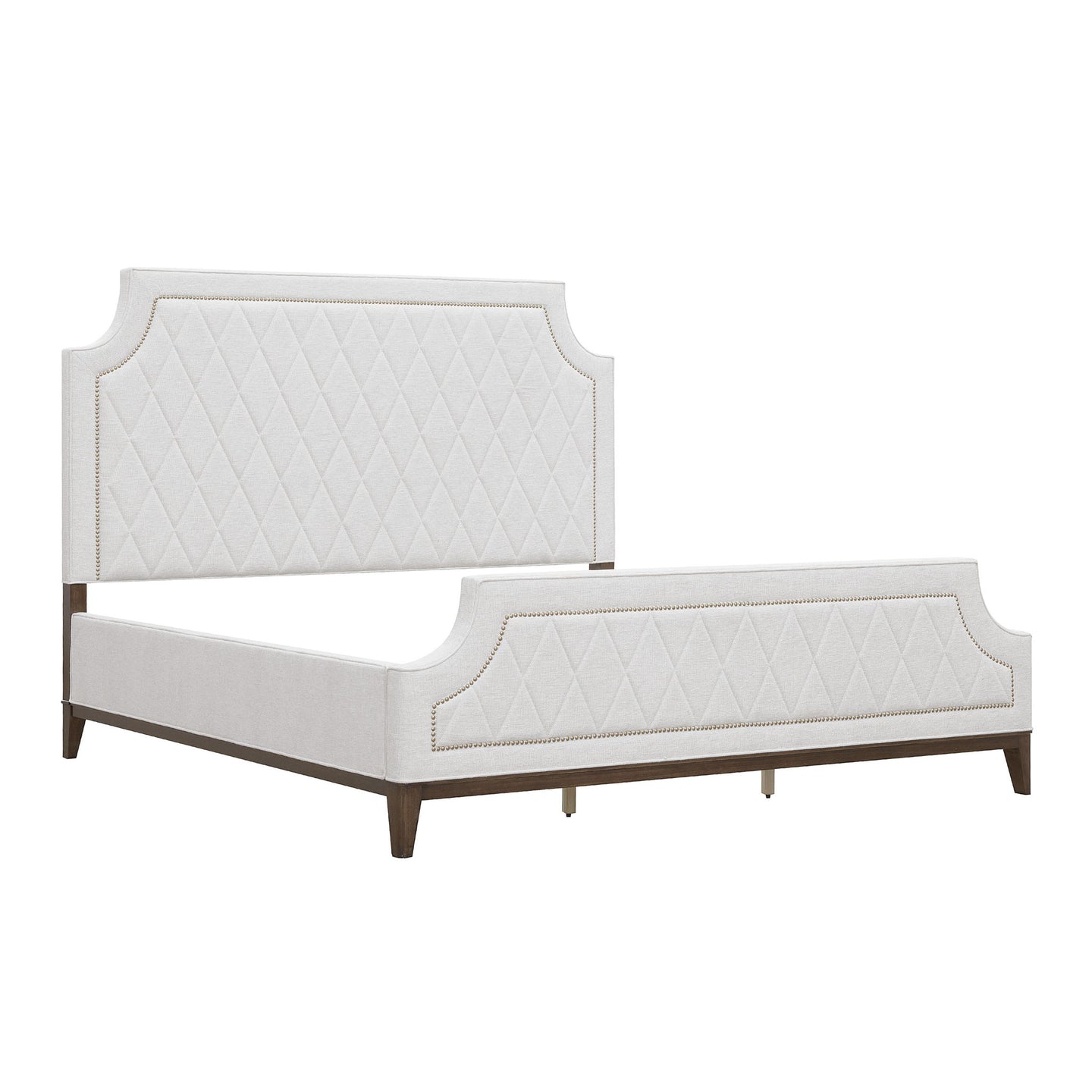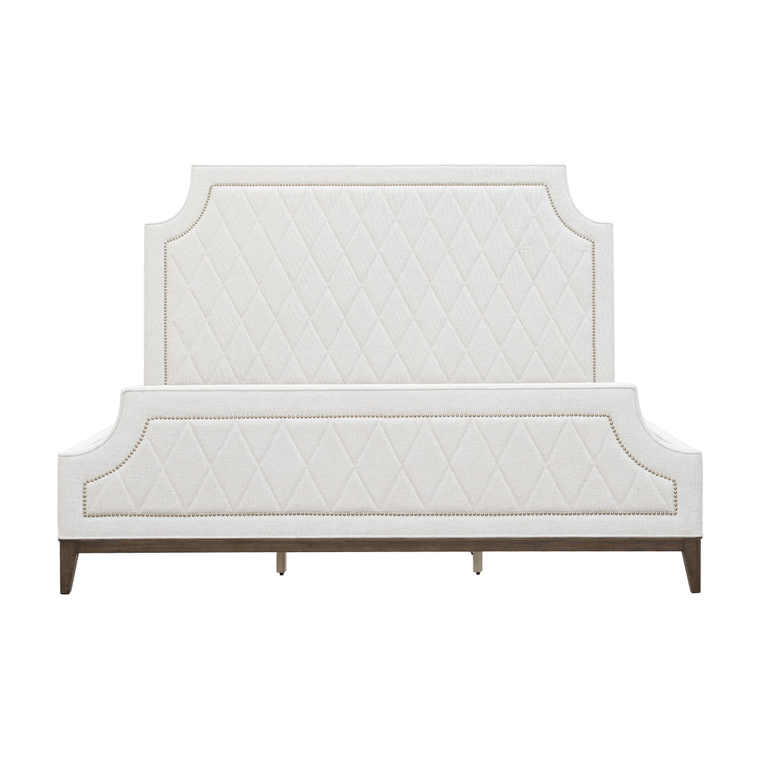 Bring timeless sophistication to the bedroom with Asher Park Upholstered Bed, showcasing a luxurious quilted diamond pattern for a soft, tailored look. A refined fabric is elevated with nailhead trim detailing, adding a touch of classic charm and artisanal craftsmanship. The bed is anchored by a rich wood base made from premium eucalyptus veneers in a deep finish, creating a warm, grounded aesthetic. Perfect for traditional and transitional interiors, this upholstered bed blends comfort, detail, and enduring style.