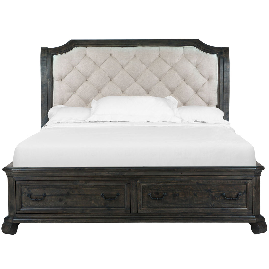 Bellamy - Complete Queen Sleigh Storage Bed - Peppercorn