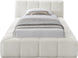 Upgrade your bedroom with the Carlin beige chenille full bed, showcasing a unique yet elegant frame with channel tufting, this bed effortlessly combines contemporary style with practical design. Its smooth, velvety texture and refined details create a striking centerpiece, embodying both exquisite taste and timeless beauty.