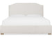 The Driftwood Queen Upholstered Bed in Buckboard features soft fabric upholstery complemented by warm wood feet. This bed includes the headboard, footboard, and rails, with the flexibility to use the headboard separately.