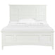 A soft Chalk White finish on Pine veneers and solids creates a relaxed beachy feel in any bedroom with Heron Cove. A high back beaded framed panel bed lends shaker appeal and is available with hidden rails storage. Straight legs support the straight lined chests with raised beaded trim for cottage appeal. Come home to Heron Cove!