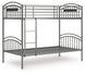 Save space and let little ones snooze in style. This bunk bed's steel gray finish pairs with a variety of colors and aesthetics. Its ladder position adjusts to the left or right side to suit a bedroom's layout. And the bed is adaptable to your family's changing needs, with the ability to convert from a bunk bed to two individual twin beds.