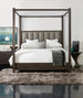 Grand in its simplicity and celebration of simple, pure and linear forms, the Miramar Jackson King Poster Bed with Tall Posts & Canopy takes a global view of design and offers a respite of exotic elegance. The headboard is vertically-channeled and upholstered in Cleary Cement, a soft neutral contrasting with the rustic White Oak and Pine Knotty Oak Veneer frame with a smoky Arabica finish. Includes headboard, footboard, rails tall posts and canopy frame.