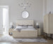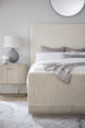 Serene, soft and stylish with a cloud-like floating appearance, the monochromatic Modern Mood Upholstered Bed is a stunning focal point for any bedroom space. The headboard, footboard and rails are upholstered in the Inverness Natural fabric, with trim in Quartered Oak Veneers finished in Diamond and accented with metal for a luxe mixture of materials. Includes headboard, footboard and rails.
