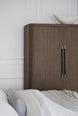 Unbound by geographical design, Modern Mood presents itself as an evolution of design choices, spanning a variety of decades and design movements, while maintaining an unmistakably modern aesthetic that transcends time. The 90-piece collection includes bedroom, dining room, home office, accent and occasional items characterized by substantive forms with soft architectural details. Elevated materials and brushed metal accents in a warm pewter finish are evident throughout the collection, including metal banding and edging as well as marble and glass accents. Crafted with flat cut quartered oak veneer with wire-brushed detailing, Modern Mood is presented in two finishes: Mink and Diamond. Delivering a dark, earthy brown with notes of black, Mink delivers a timeless aesthetic. A much lighter presentation is achieved with the crystal-like alabaster and pewter hues of the Diamond finish, delivering a soft sophistication.