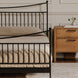 Drawing inspiration from the desire to balance metal's sturdy nature with a gentler aesthetic, the Monet bed features graceful curves and finial detailing reminiscent of classic architecture. Traditional slatting on both the headboard and footboard adds texture and visual depth, and the unique fusion of materials offers a softer take on the metal bed.