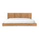 - A king bed with solid oak construction. A low-profile build features an expansive headboard