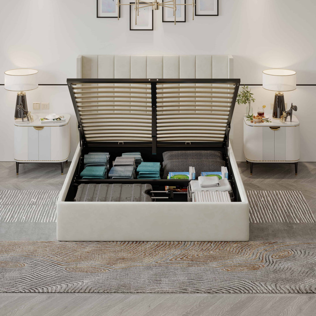 Elevate your bedroom with the perfect blend of style, comfort, and smart design. The Hydraulic Lift-Up Storage Bed offers a soft, tufted upholstered headboard that exudes elegance while providing plush comfort for relaxing evenings. Beneath the platform, a smooth hydraulic lift reveals generous storage space — ideal for keeping extra bedding, pillows, or seasonal items out of sight but within easy reach.
