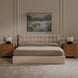 The Sebastion storage bed's double-layered headboard, featuring a tufted second layer and pillow-like front, creates a serene sanctuary. Crafted from solid wood, foam-filled, and upholstered in fabric upholstery, it promises enduring comfort. An innovative hydraulic lift system reveals discreet storage, seamlessly blending functionality with sophistication; every detail speaks to understated luxury and practical sensibilities.