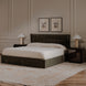 • Pillow-like double-layered headboard with tufted second layer & hydraulic lift storage