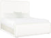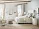 Create a tranquil bedroom retreat in a soft creamy white palette and soft silhouette with the Serenity Ashore California King Upholstered Bed. This striking bed combines the Macrame Artic fabric on the upholstered headboard with the Sand Dollar white lacquered glasscloth border on the headboard and a grasscloth footboard and side rails.