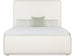 Create a tranquil bedroom retreat in a soft creamy white palette and soft silhouette with the Serenity Ashore Queen Upholstered Bed. This striking bed combines the Macrame Artic fabric on the upholstered headboard with the Sand Dollar white lacquered glasscloth border on the headboard and a grasscloth footboard and side rails.