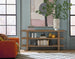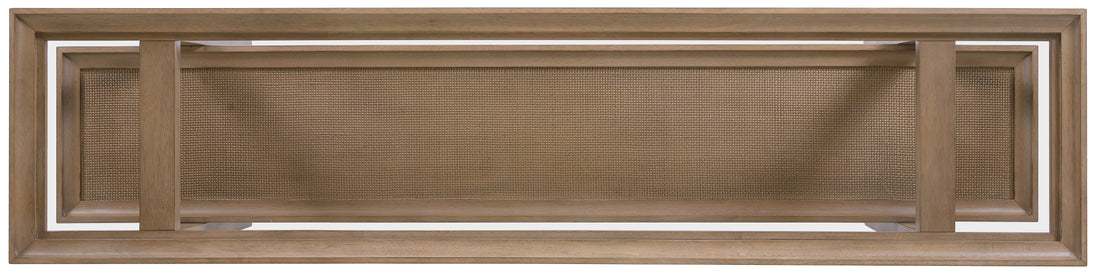 Blending organic textures and neutral tones with a refined minimalist silhouette, the stylistically versatile Sonnet Console Table exudes a natural luxury. Featuring a narrow rectangle shape only 16 inches deep, it has a tempered glass insert top and two fixed shelves with cane inserts. The table is crafted of Quartered and Cathedral-Cut White Oak Veneers in a light earthen finish.