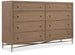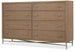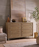 A stylistically versatile dresser blending natural textures with a light-and-airy modern aesthetic, the Sonnet 8-Drawer Dresser is crafted of Quartered and Cathedral-Cut White Oak Veneers in a light earthen-toned finish. Chic satin-finished metal knobs accentuate the metal frame and the slender, tapered legs and X-stretcher. All drawers are self-closing, and the right top drawer has cream-colored removable felt-lined jewelry tray and a removable felt liner. The bottom two drawers are cedar-lined.