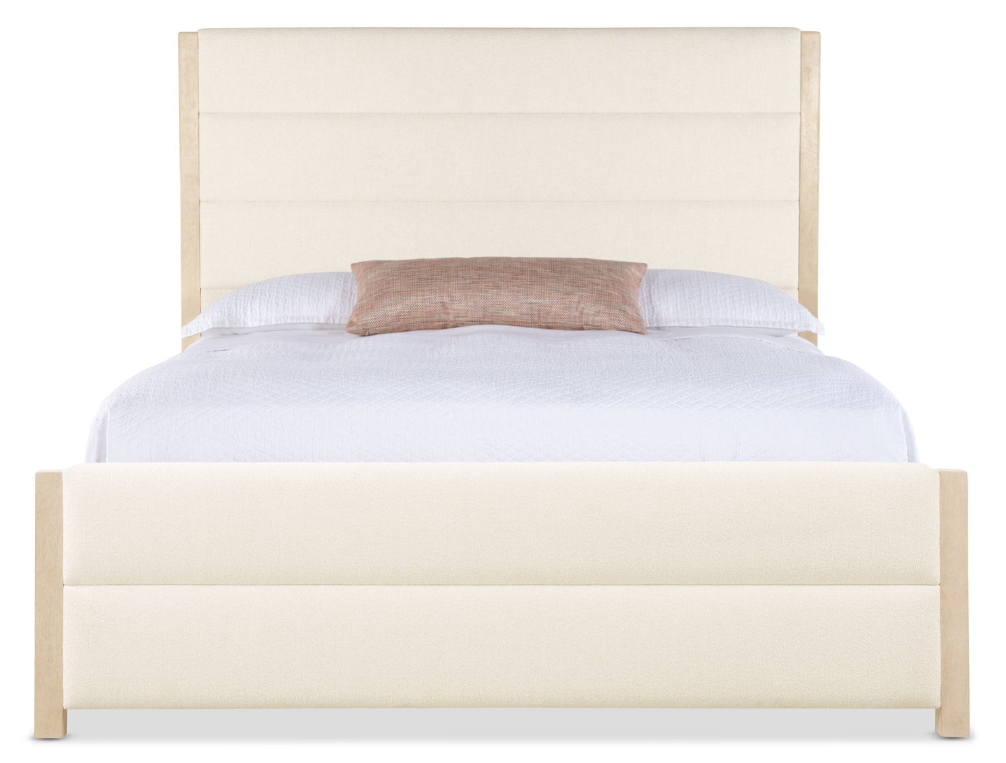 The Westwood Upholstered Bed brings a serene blend of modern design and timeless elegance to your bedroom. Featuring performance fabric upholstery this bed exudes understated luxury with its horizontal fabric channel design. Made from quartered oak veneers with finish, the bed includes a headboard, footboard, and rails, offering versatility with the option to use the headboard alone. Perfect for those seeking comfort and refined aesthetics.