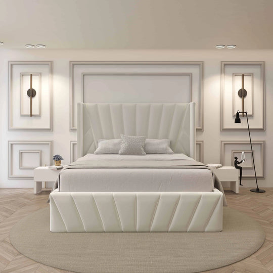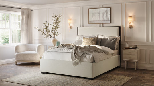 Auden Modern Beige Bouclé Platform Bed – Available in Double, Queen & King Double: 81"L x 57"W x 45"HQueen: 85"L x 63"W x 45"HKing: 85"L x 79"W x 45"H Minimalist design meets cozy texture in the...Sale price From $299.00Regular price $499.00Sale price From $299.00Regular price $499.00 -