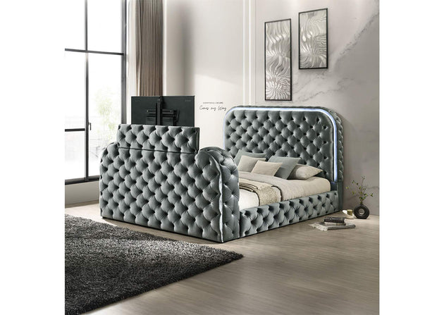 Kana Upholstered Bed with Led, Fireplace and TV Stand