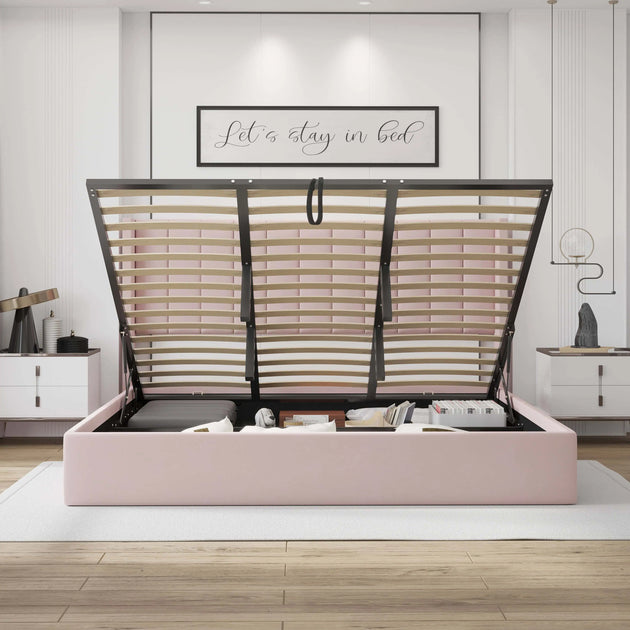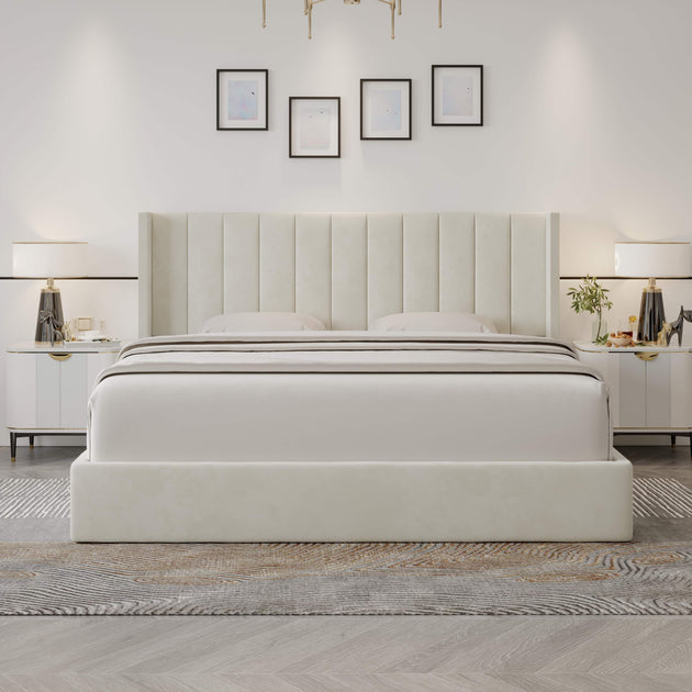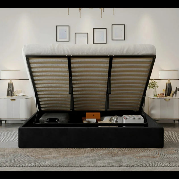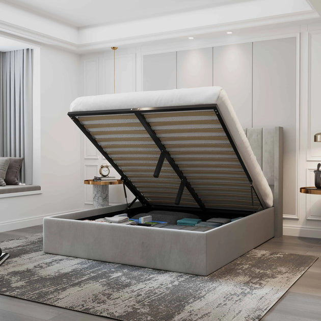 Savannah Hydraulic Lift-Up Storage Bed - Ivory