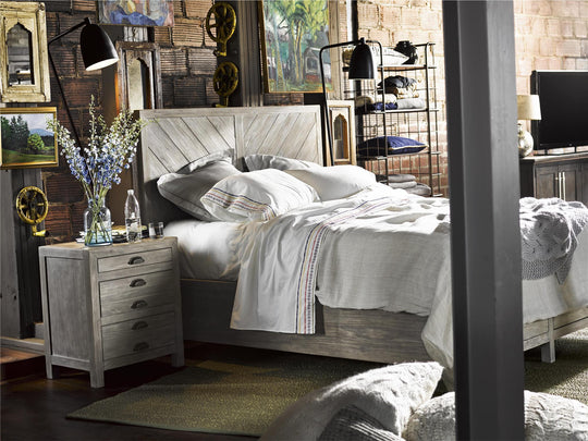 Chic and restorative, the Biscayne Bed showcases a diagonally patterned headboard, a footboard outfitted with two spacious storage drawers, and a cool Greystone finish.Product FeaturesFinish - GreystoneSpecifications Item Depth (Inches): 87 Item Height (Inches): 58 Item...Sale price From $5,739.00Regular price $8,609.00Sale price From $5,739.00Regular price $8,609.00 -
