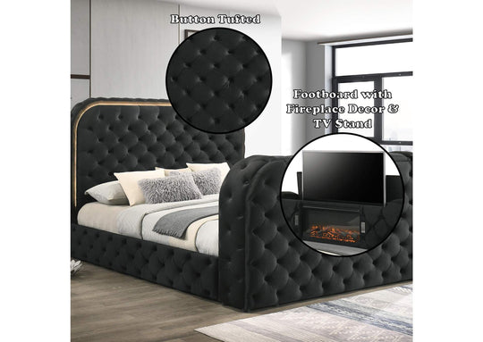 Kana Upholstered Bed with Led, Fireplace and TV Stand