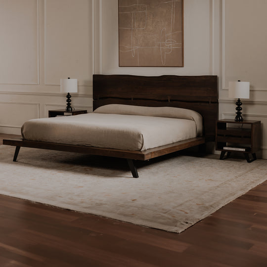 The Madagascar platform bed is a sublime fusion of nature's tranquility and modern sophistication. Crafted from solid Acacia wood, this bed showcases a low platform design accentuated by an organic edge headboard, masterfully joined using the...Sale price From $2,499.00Regular price $3,957.99Sale price From $2,499.00Regular price $3,957.99 -