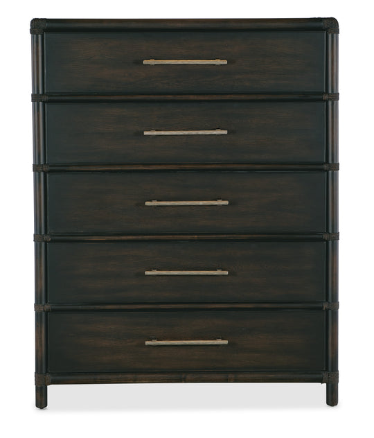 Inspired by tropical getaways, the Retreat Pole Rattan Five-Drawer Chest is a blend of natural materials in a laid-back, versatile design. Crafted of Oak and Maple Veneers with Rope accents, the chest is finished in Black...Sale price $4,609.00Regular price $4,999.00Sale price $4,609.00Regular price $4,999.00 -