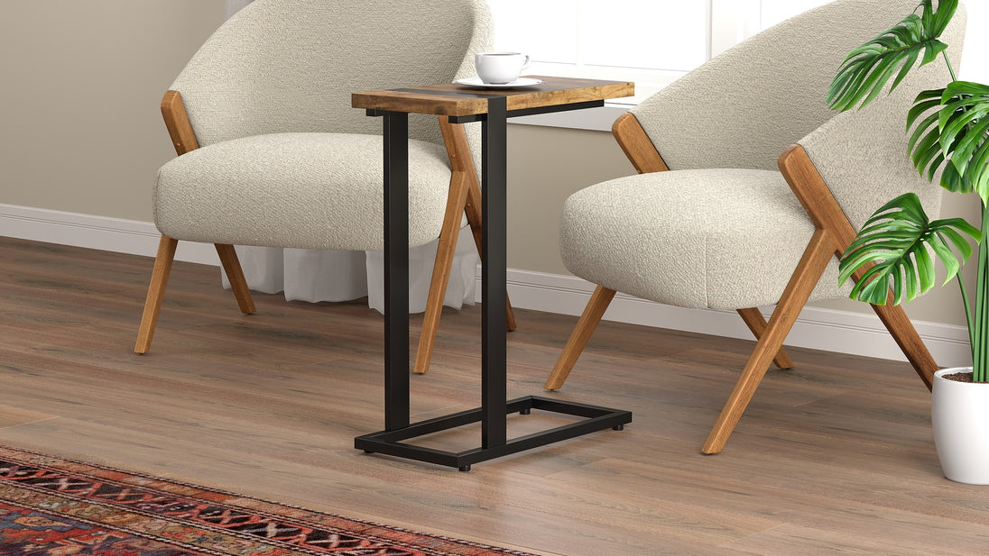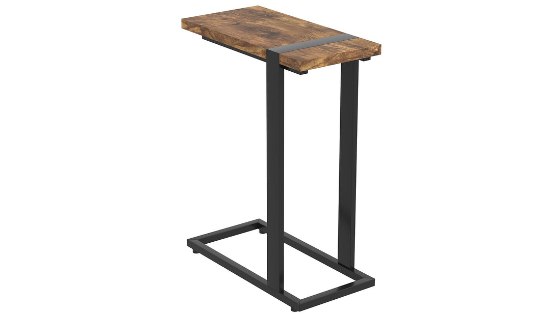 19" C-Shaped End Table Brown Reclaimed Wood Metal Frame