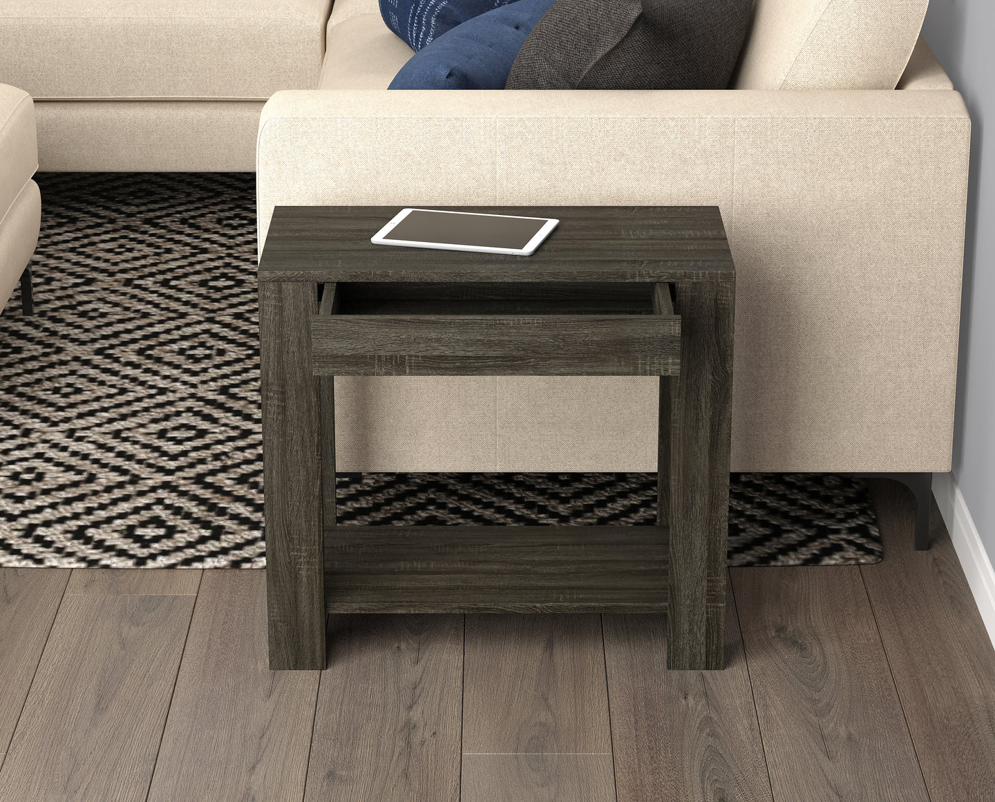 24" Classic Narrow Accent Table Dark Grey Hidden Storage Shelf