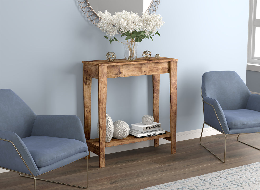 Add timeless charm into your home with this Rustic Farmhouse Entry Table—where classic beauty meets modern functionality. With its warm, natural tones and simple yet sturdy silhouette, this table brings a cozy, lived-in feel to your entryway, hallway, or living room. The spacious tabletop is perfect for showcasing your favorite décor, framed photos, or a vase of fresh flowers, while the lower shelf adds both balance and extra storage.Designed to complement any style, from country chic to modern minimalist, this piece adds a welcoming touch to any room. Its clean lines and rustic finish offer an inviting look that feels effortlessly elegant. Whether greeting guests or organizing your everyday essentials, this console table is as practical as it is charming. Built to last and made to impress, it’s the perfect piece to complete your home’s entryway with warmth and style. Let it be the first thing that makes your house feel like home.