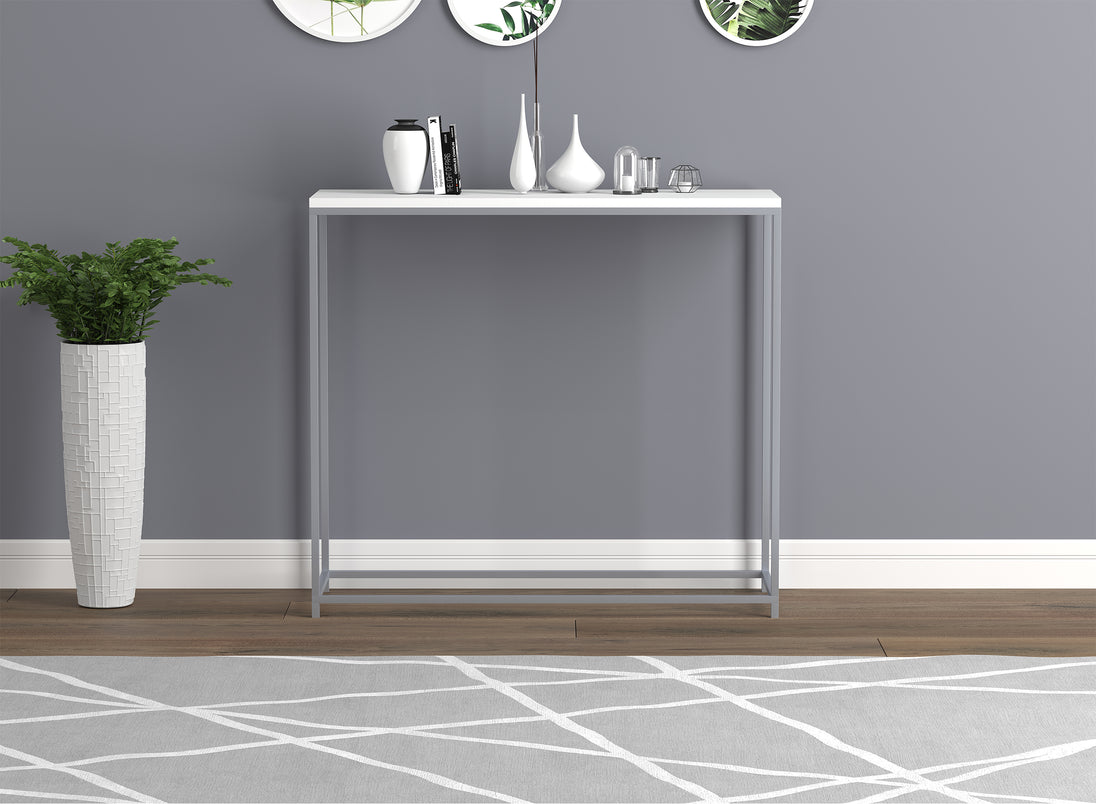 Bring style and versatility into your home with this 31-inch Console Table—a charming blend of form and function made to fit effortlessly into any space. Whether placed in your entryway, hallway, bedroom, or living room, this sleek and sturdy table is designed to complement your décor while offering everyday convenience. Its clean lines and modern silhouette make it a timeless piece that pairs beautifully with any style, from rustic to contemporary. Use it to display your favorite plants, décor, or a warm table lamp, or turn it into a handy catch-all for keys, mail, and everyday essentials. The surface is perfect for showcasing photos or setting up a cozy coffee station, while its compact size makes it ideal for small spaces. It’s more than just a console—it’s your new charging station, makeup table, bar setup, or stylish work-from-home nook. Built with durable materials and designed for real life, this table brings beauty and function together in perfect harmony. Let it be the subtle statement piece that welcomes you home every day.