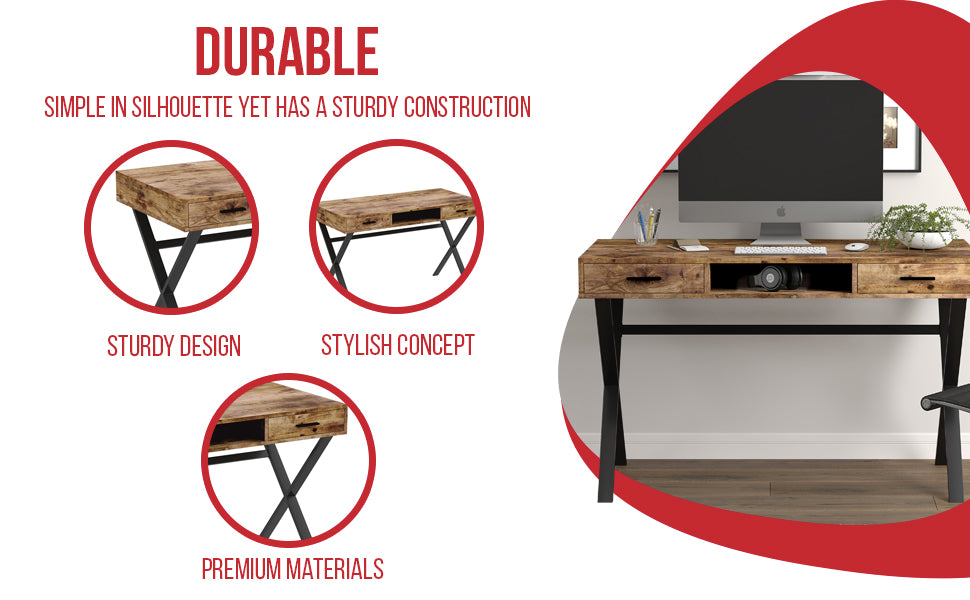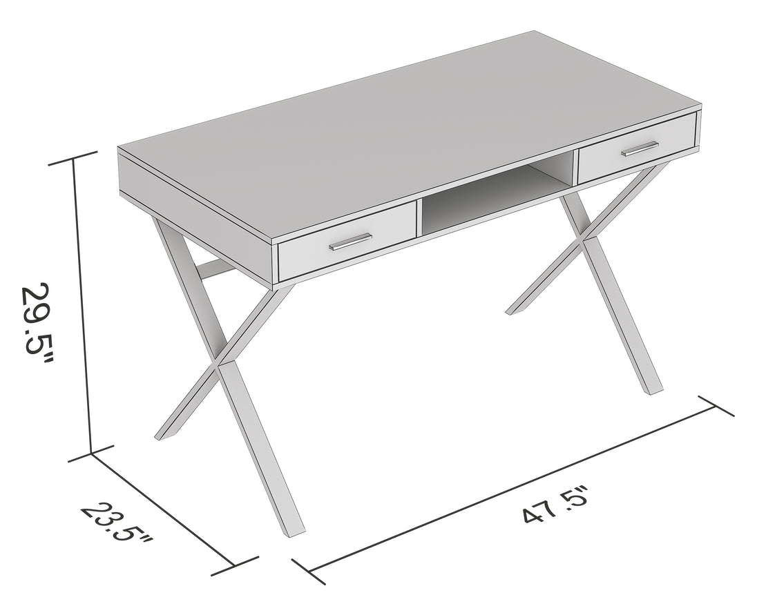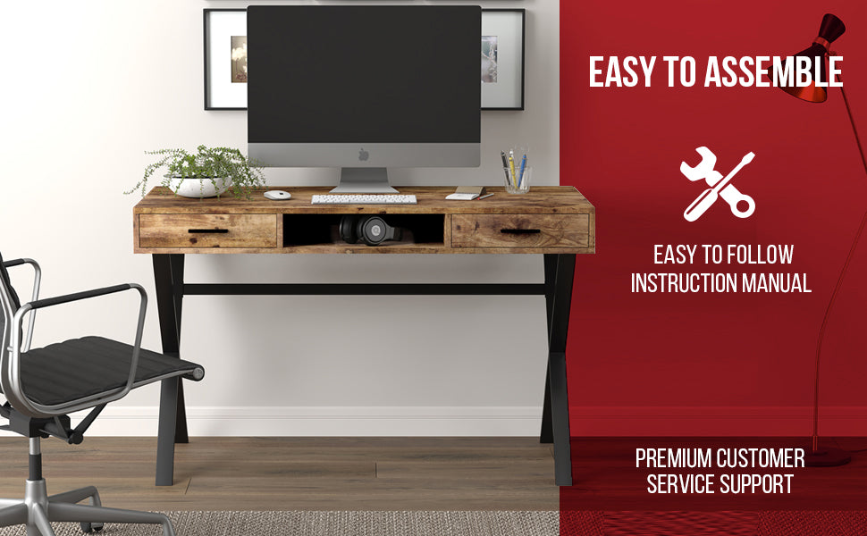 Bring sleek sophistication and smart functionality to your space with this 47” Computer Desk featuring 2 drawers, 1 shelf, and a sturdy black metal frame. Designed for modern living, this desk offers the perfect balance of style and practicality, making it ideal for home offices, bedrooms, or creative corners. The spacious desktop provides ample room for your laptop, paperwork, and décor, helping you stay focused and inspired throughout the day. Two smooth-gliding drawers keep your essentials neatly tucked away, while the open shelf offers quick access to books, supplies, or personal touches. The black metal frame adds an industrial edge while ensuring long-lasting durability for everyday use. Whether you're working, studying, or creating, this desk offers everything you need within reach. Its clean lines and contemporary look blend beautifully with any décor, adding a refined touch to your workspace. Make room for productivity and creativity with this stylish and functional desk.