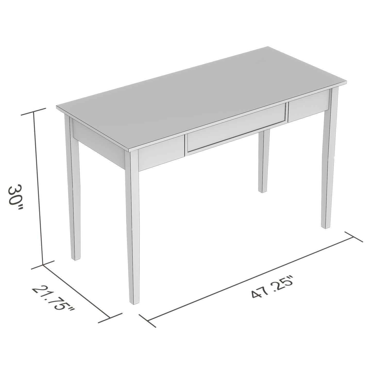 Brighten up your workspace with the clean, modern charm of the 47.25” White Computer Desk. With its crisp white finish and minimalist design, this desk brings a fresh, airy feel to any room—perfect for home offices, bedrooms, or study nooks. The spacious surface offers plenty of room for your laptop, notebooks, and creative essentials, making it ideal for writing, studying, or working from home. A single drawer keeps your must-haves neatly tucked away, helping you stay organized and focused throughout the day. Whether you're tackling a to-do list or enjoying some quiet journaling time, this desk creates a calm, inspiring environment. Its compact size makes it a great choice for smaller spaces without compromising on function. Simple, stylish, and practical—this desk is designed to complement your space and support your everyday productivity. Let it be the clean canvas for all your best ideas.