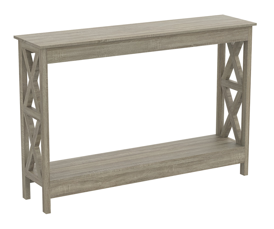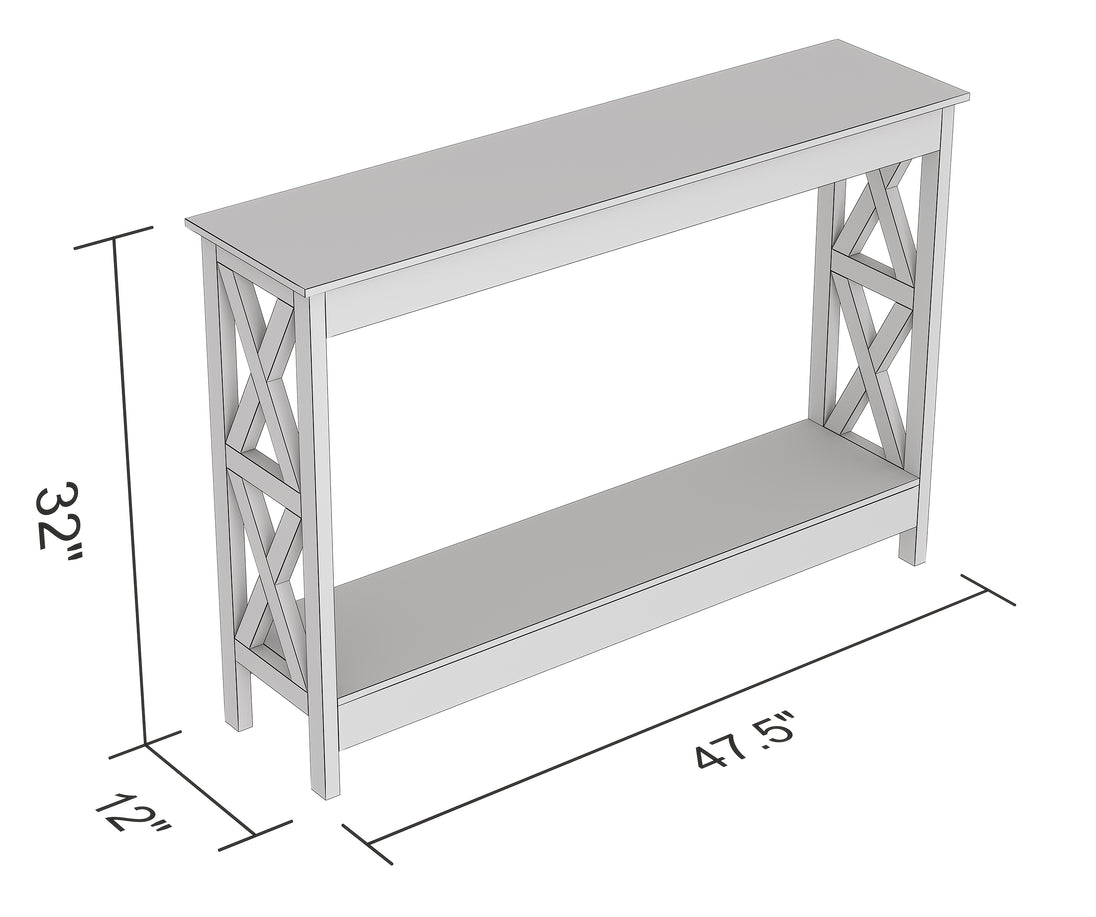 Add a touch of rustic elegance to your home with this 47.25" console table, featuring a generous surface and a practical lower shelf. Its versatile design makes it the perfect accent for entryways, living rooms, hallways, or bedrooms—seamlessly complementing both traditional and contemporary interiors. The reclaimed wood finish brings natural charm and character, creating a cozy, lived-in feel. Use the top to showcase your favorite decorative pieces, from framed photos and candles to floral arrangements or a statement lamp. The open shelf below offers extra room for books, baskets, or everyday essentials, keeping your space tidy and beautifully styled. Whether placed behind a sofa or against a hallway wall, this console table effortlessly balances style and function. Built with lasting durability in mind, it’s a reliable and timeless addition to your home. Let it become a favorite spot that reflects your personal style while enhancing the heart of your space.