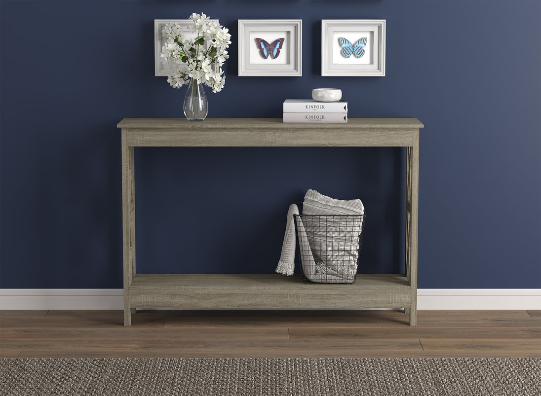 47" Sturdy Console Table Dark Taupe 1 Shelf Narrow Entryway