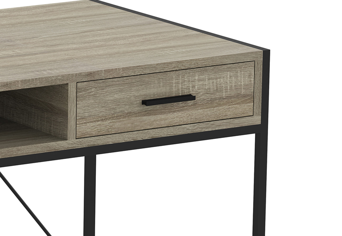 Bring sleek sophistication and smart functionality to your space with this 48” Computer Desk featuring 2 drawers, 1 shelf, and a sturdy black metal frame. Designed for modern living, this desk offers the perfect balance of style and practicality, making it ideal for home offices, bedrooms, or creative corners. The spacious desktop provides ample room for your laptop, paperwork, and décor, helping you stay focused and inspired throughout the day. Two smooth-gliding drawers keep your essentials neatly tucked away, while the open shelf offers quick access to books, supplies, or personal touches. The black metal frame adds an industrial edge while ensuring long-lasting durability for everyday use. Whether you're working, studying, or creating, this desk offers everything you need within reach. Its clean lines and contemporary look blend beautifully with any décor, adding a refined touch to your workspace. Make room for productivity and creativity with this stylish and functional desk.