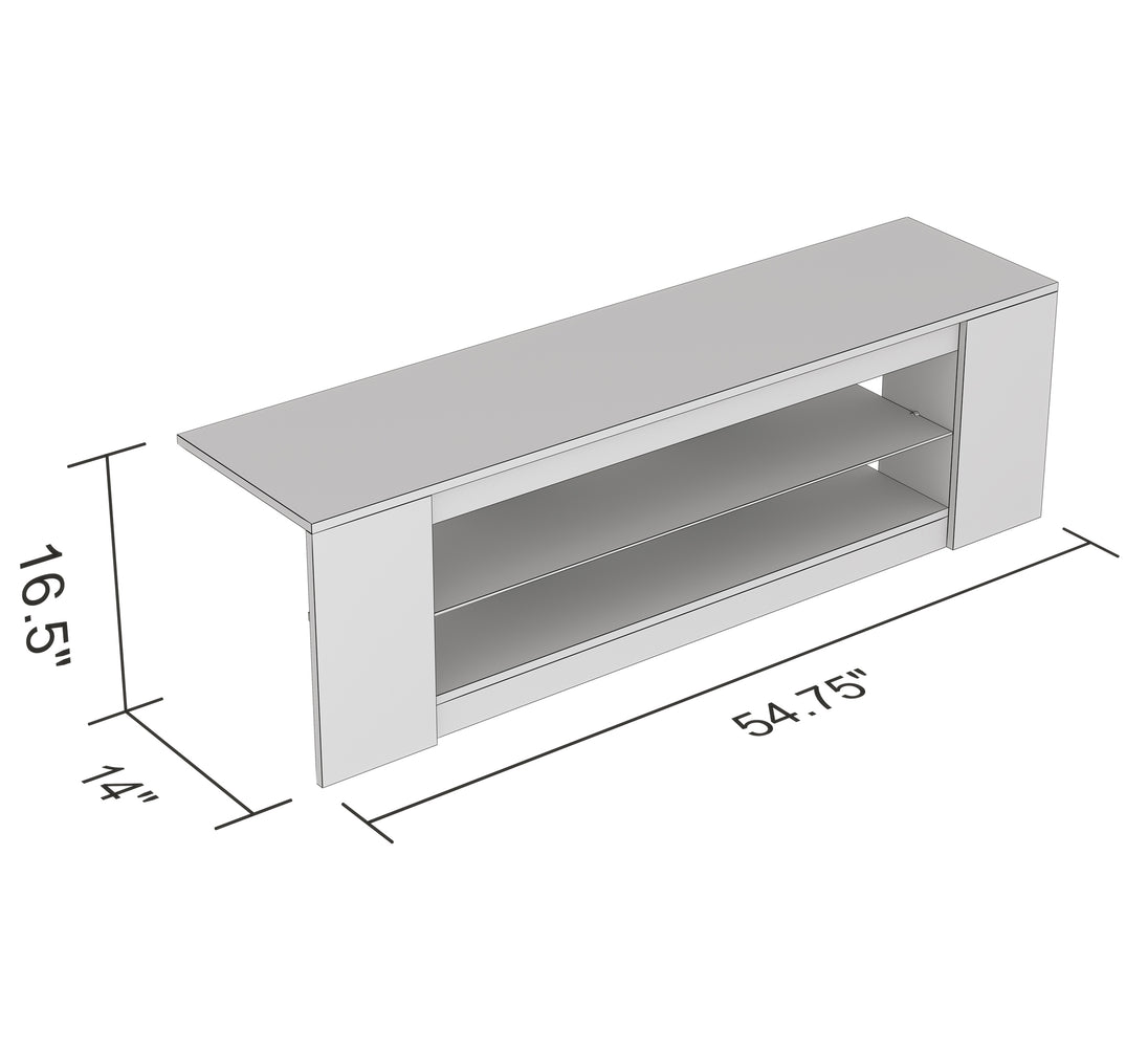 Add a touch of modern elegance to your living room with this 55" TV stand, thoughtfully designed with clean lines, open shelving, and sleek tempered glass panels. Its streamlined silhouette and sophisticated finish make it a beautiful anchor for your entertainment space, effortlessly blending style and function. The spacious top surface accommodates your TV with ease, while two open shelves offer the perfect spot for media devices, game consoles, or curated decorative pieces.Tempered glass sides bring a refined, airy look that enhances any room without overpowering it, creating a balance of strength and beauty. Whether you’re enjoying a cozy movie night or entertaining guests, this stand keeps everything organized and within reach. Its versatile design fits effortlessly with a range of interiors—from contemporary to classic. Built for everyday living and lasting appeal, it’s more than just a place for your TV—it’s a piece that completes your space with quiet sophistication. Let it be the stylish foundation for all your favorite moments at home.