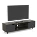 59" TV Stand Dark Grey Wood 2 Shelves 2 Black Doors