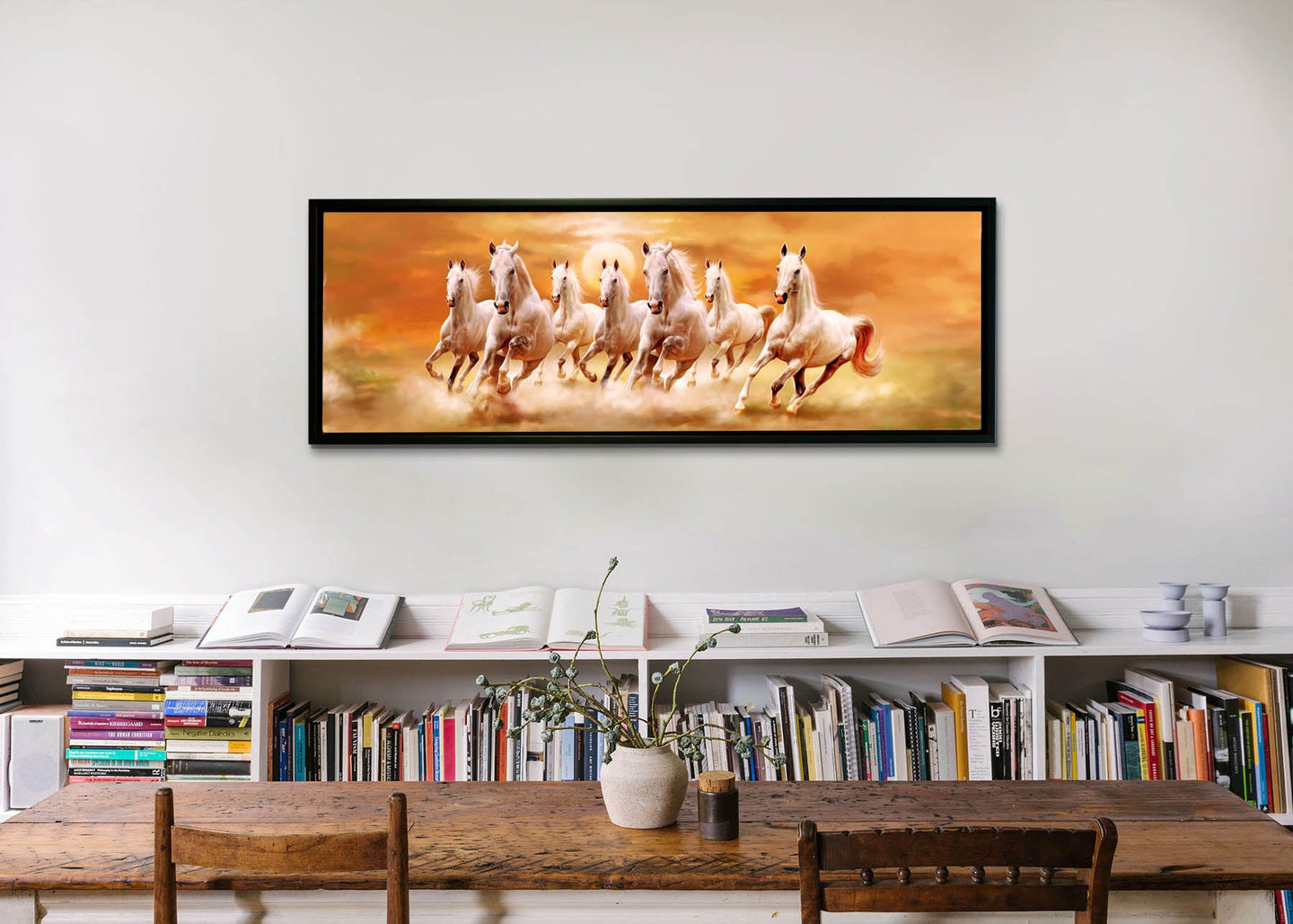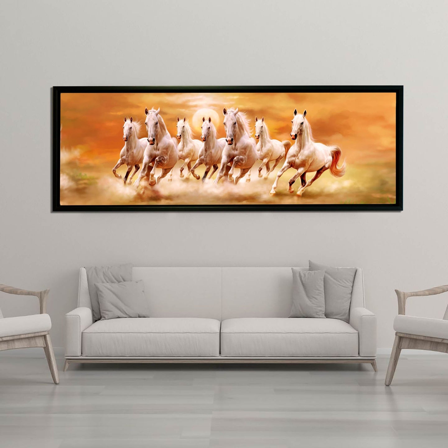 7 Horses and Sunshine-Wall Decor- Wildlife Canvas Art - Gold varnish