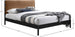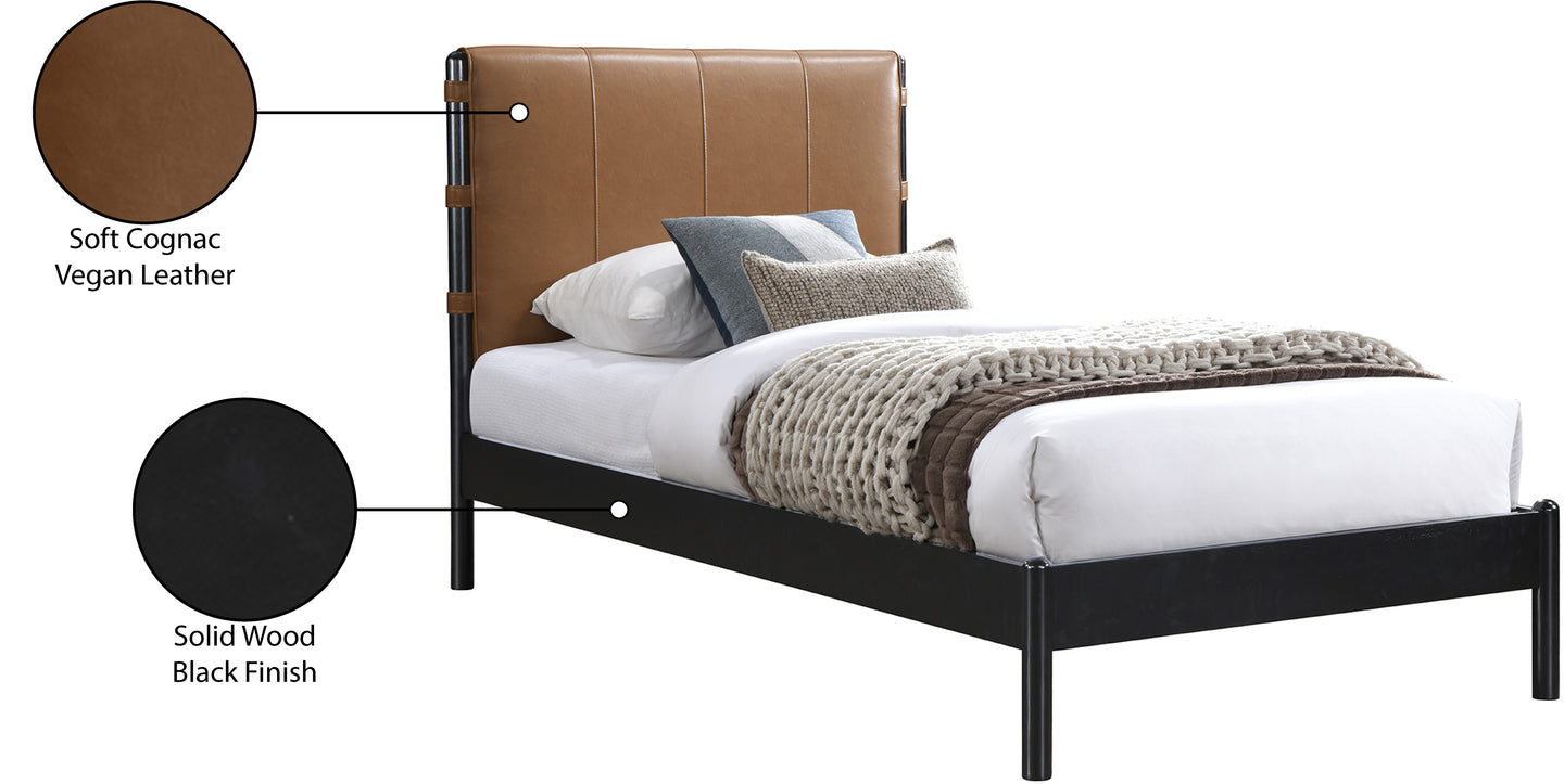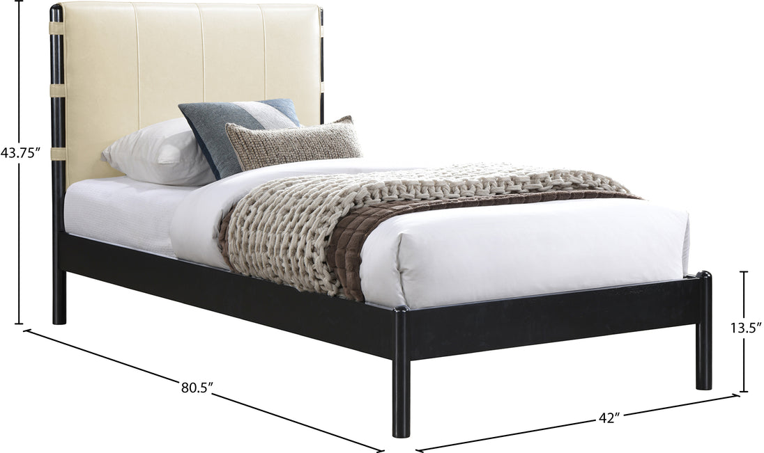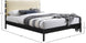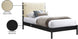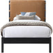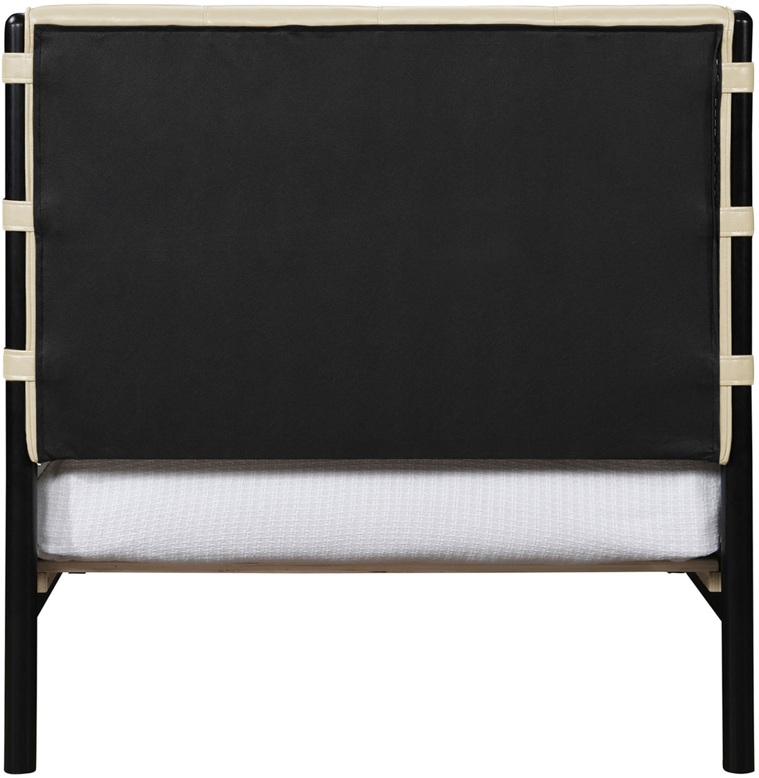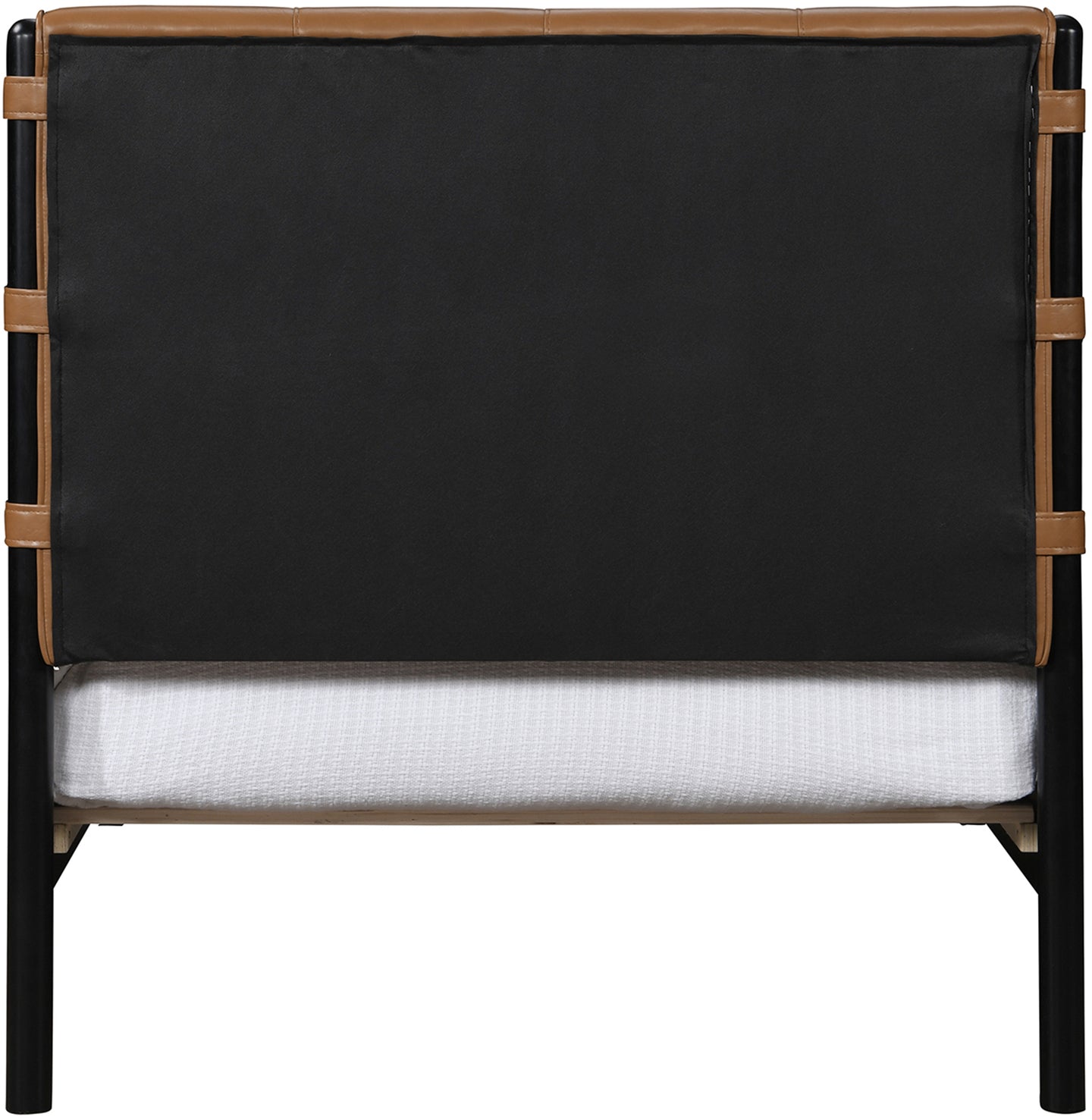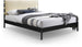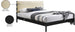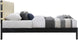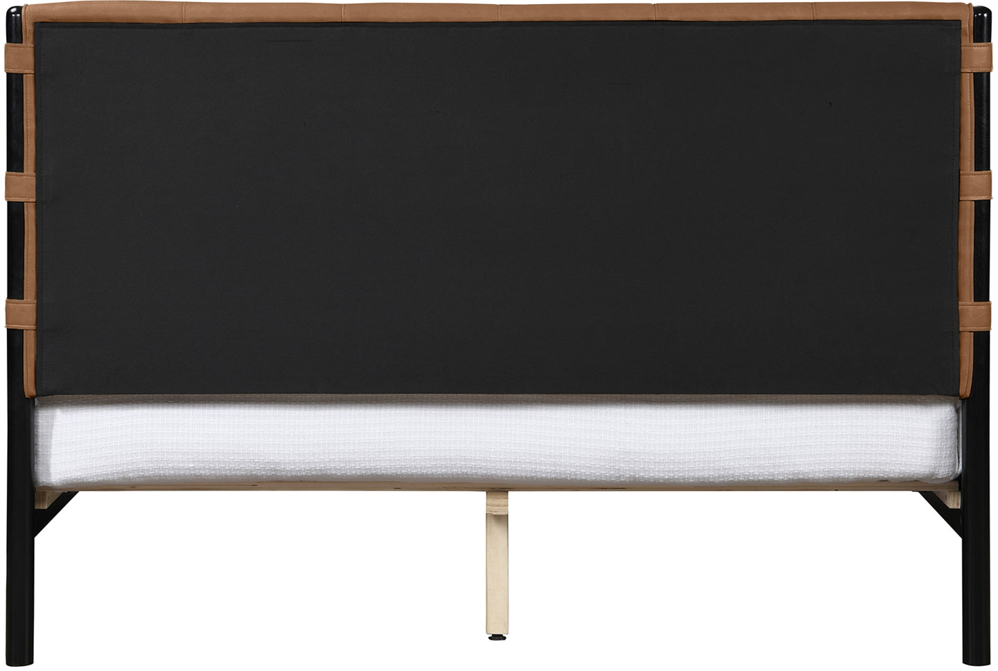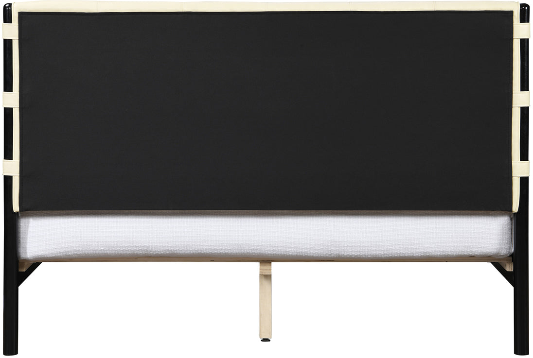Perfect for elevating any bedroom decor, the Abigail vegan leather upholstered full bed offers a blend of modern sophistication and comfort. Featuring a sleek black metal frame, this bed is enhanced by a vegan leather headboard for a striking contrast. The headboard's clean lines and vertical stitching lend a contemporary, eclectic vibe, while the soft, leather-like texture provides a touch of luxury.