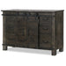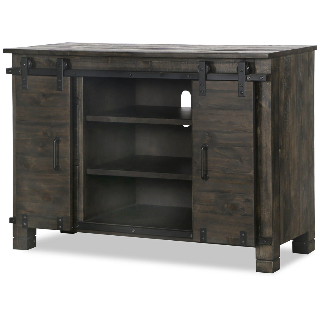 - Features 2 Sliding Wood Doors In The Center With 2 Adjustable Wood Shelves And Wire Management Behind Doors.