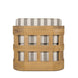 - Contemporary, design-forward piece with curved windowpane detailing that nods to vintage references