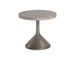 Inspired by brutalist architecture, this concrete end table will be a bold addition to your space. Features a grey concrete round top with a solid base. Can be paired with matching coffee table. Crafted from a natural concrete mix, each piece will look different, with variations of hues that will enhance over time. Suitable for indoor and covered outdoor spaces.
